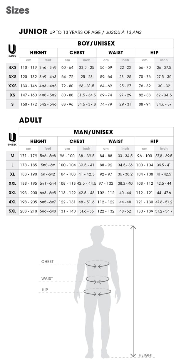 - JUNIOR: 3XS | XXS | XS | S